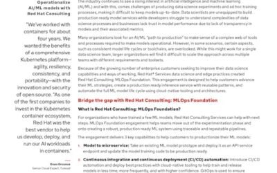 Red Hat Consulting: MLOps Foundation This Red Hat Consulting: MLOps Foundation overview is for enterprise customers seeking to improve their data science capabilities. Read to learn more. FILL THE FORM BELOW