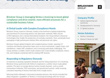 Future-Ready: Brückner Implements Global E-Invoicing Brückner Group is leveraging Vertex e-Invoicing to boost global compliance and drive smarter, more efficient processes for a sustainable business future. A Global Leader with Complex Compliance Needs Brückner Group, based in Germany, stands at the forefront of global engineering and machinery for processing plastics and alternative materials. With around…