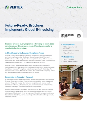 Brückner Group is leveraging Vertex e-Invoicing to boost global compliance and drive smarter, more efficient processes for a sustainable business future.
